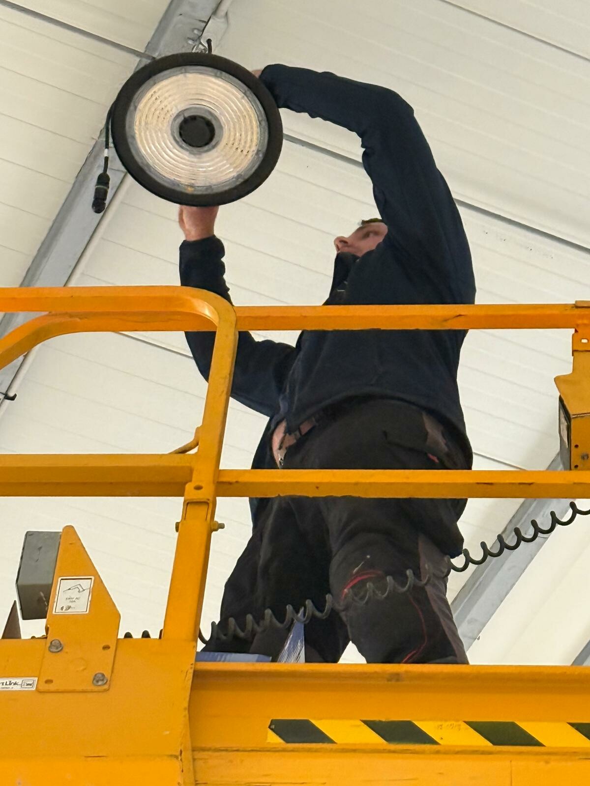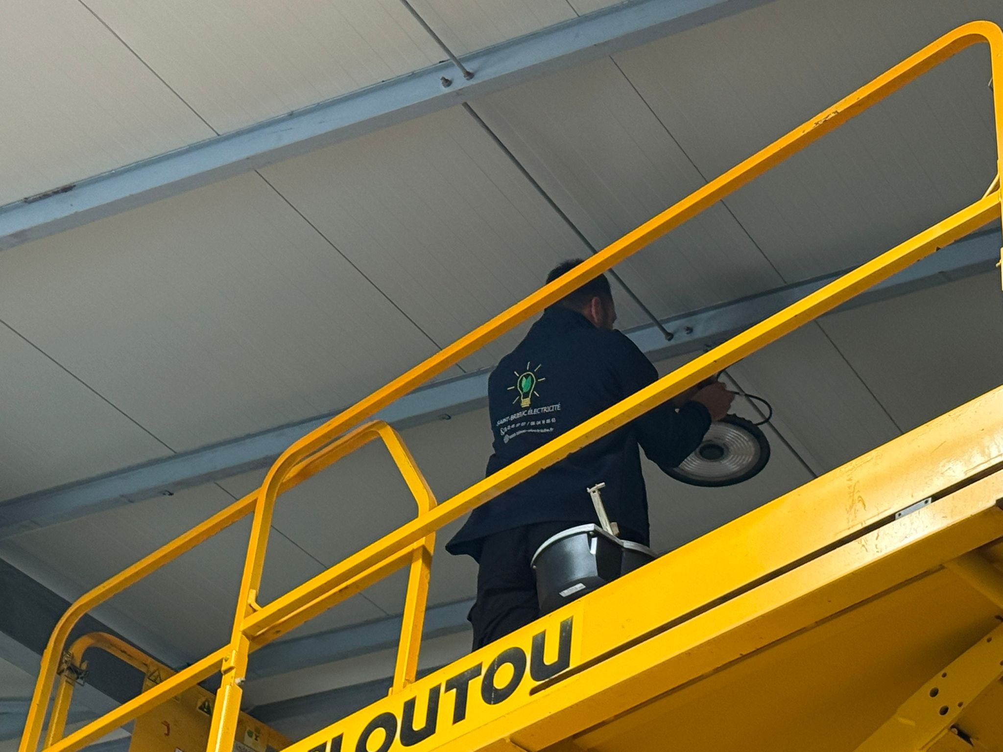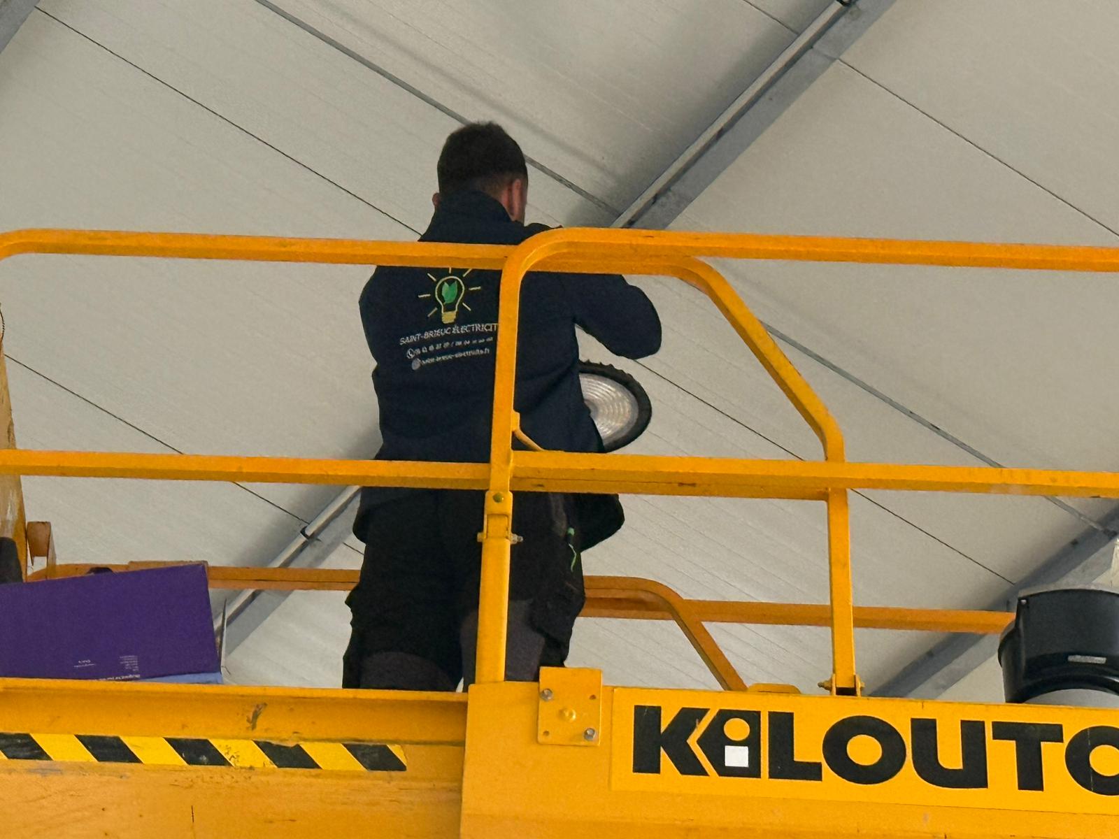 Nous sommes récemment intervenus à Saint-Brieuc pour remplacer l’ensemble des luminaires dans un espace de travail à grande hauteur.